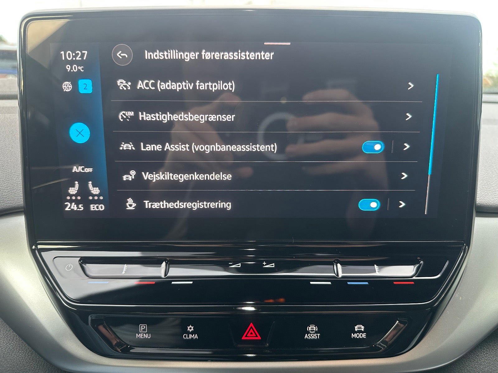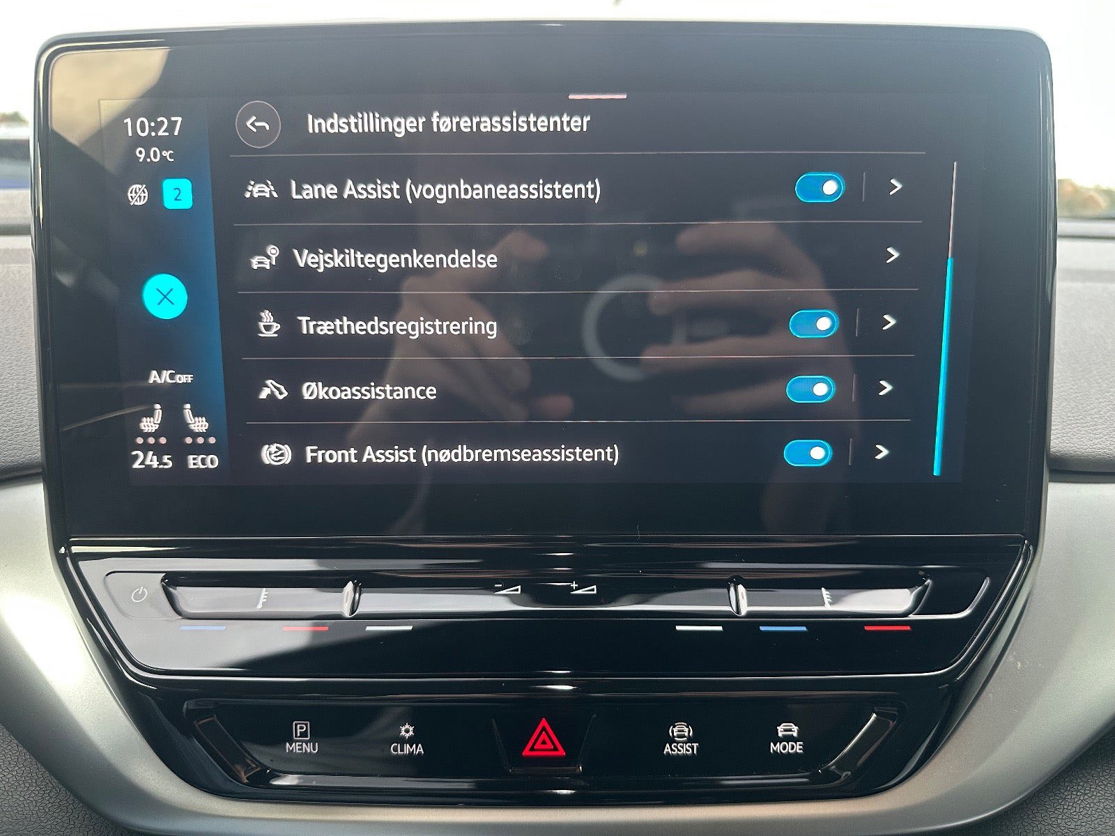 Fuld udstyrsliste: kørecomputer, digitalt cockpit, bagagerumsdækken, multifunktionsrat, læderrat, stofindtræk, højdejust. førersæde, splitbagsæde, mørk loftbeklædning, ambiente belysning, alufælge, 19" alufælge, helårshjul, el-sidespejle, el-sidespejle m/varme, el-klapbare sidespejle, el-klapbare sidespejle m/varme, led kørelys, fuld led forlygter, led baglygter, matrix led forlygter, dynamisk blinklys i bag, tagræling, varme i rat, automatgear, 2 zone klima, fjernb. centrallås, centrallås, nøglefri tænding, adaptiv fartpilot, aut. nedbl. bakspejl, udv. temp. måler, sædevarme, 4x el-ruder, el-ruder, elektrisk parkeringsbremse, trådløs mobilopladning, app integration, dab radio, håndfrit til mobil, musikstreaming via bluetooth, android auto, apple carplay, usb-c tilslutning, navigation, regnsensor, bakkamera, parkeringssensor (bag), parkeringssensor (for), skiltegenkendelse, isofix, automatisk lys, fjernlysassistent, airbag, træthedsregistrering, vognbaneassistent, automatisk nødbremsesystem, stemmebetjening, auto hold |