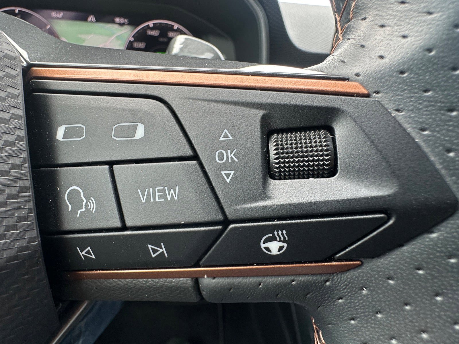 kørecomputer, digitalt cockpit, bagagerumsdækken, multifunktionsrat, læderrat, dellæderindtræk, sportssæder, højdejust. førersæde, højdejust. forsæder, justerbar lændestøtte, splitbagsæde, mørk loftbeklædning, ambiente belysning, alufælge, 18" alufælge, el-sidespejle, el-sidespejle m/varme, el-klapbare sidespejle, el-klapbare sidespejle m/varme, tågelygter, led kørelys, fuld led forlygter, led baglygter, dynamisk blinklys i bag, tagræling, mørktonede ruder i bag, automatgear, ratgearskifte, varme i rat, 3 zone klima, centrallås, fjernb. centrallås, nøglefri adgang, nøglefri tænding, fartpilot, aut. nedbl. bakspejl, udv. temp. måler, 4x el-ruder, el-ruder, sædevarme, elektrisk parkeringsbremse, trådløs mobilopladning, navigation, dab radio, håndfrit til mobil, musikstreaming via bluetooth, android auto, apple carplay, usb-c tilslutning, parkeringssensor (bag), dæktryksmåler, træthedsregistrering, isofix, automatisk lys, airbag, vognbaneassistent, stemmebetjening, auto hold, automatisk nødbremsesystem