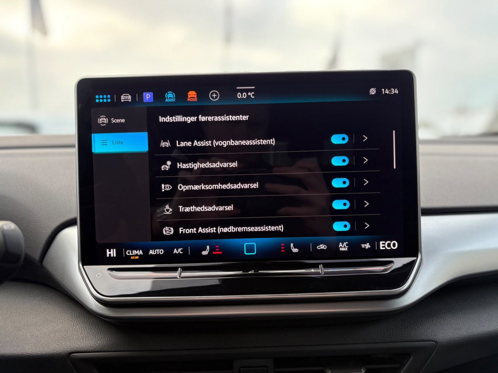 Fuld udstyrsliste: kørecomputer, digitalt cockpit, bagagerumsdækken, multifunktionsrat, stofindtræk, læderrat, højdejust. førersæde, mørk loftbeklædning, splitbagsæde, ambiente belysning, alufælge, 19" alufælge, helårshjul, el-sidespejle, el-klapbare sidespejle, el-sidespejle m/varme, el-klapbare sidespejle m/varme, fuld led forlygter, led baglygter, matrix led forlygter, dynamisk blinklys i bag, tagræling, automatgear, varme i rat, 2 zone klima, centrallås, fjernb. centrallås, nøglefri tænding, fartpilot, adaptiv fartpilot, aut. nedbl. bakspejl, udv. temp. måler, sædevarme, el-ruder, 4x el-ruder, elektrisk parkeringsbremse, app integration, dab radio, navigation, musikstreaming via bluetooth, håndfrit til mobil, apple carplay, android auto, usb-c tilslutning, parkeringssensor (bag), parkeringssensor (for), 360° kamera, bakkamera, træthedsregistrering, skiltegenkendelse, isofix, automatisk lys, fjernlysassistent, airbag, vognbaneassistent, automatisk nødbremsesystem, stemmebetjening, svingbart træk |
