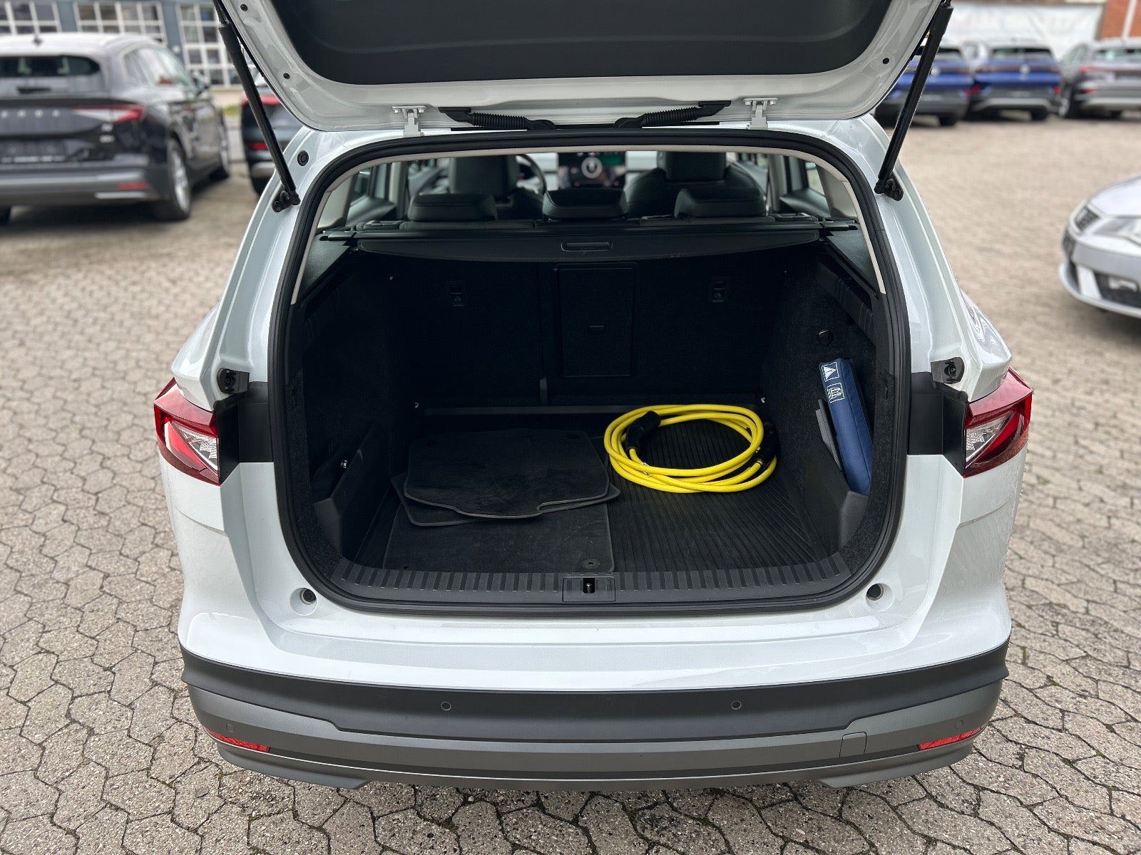 Fuld udstyrsliste: kørecomputer, digitalt cockpit, læderrat, stofindtræk, multifunktionsrat, højdejust. førersæde, ambiente belysning, splitbagsæde, 19" alufælge, el-klapbare sidespejle m/varme, tågelygter, led kørelys, fuld led forlygter, led baglygter, tagræling, fuldaut. klima, fjernb. centrallås, nøglefri adgang, nøglefri tænding, udv. temp. måler, 4x el-ruder, elektrisk parkeringsbremse, app integration, dab radio, navigation, musikstreaming via bluetooth, android auto, håndfrit til mobil, apple carplay, usb-c tilslutning, bakkamera, parkeringssensor (bag), parkeringssensor (for), skiltegenkendelse, træthedsregistrering, isofix, automatisk lys, auto hold, automatisk nødbremsesystem, vognbaneassistent |